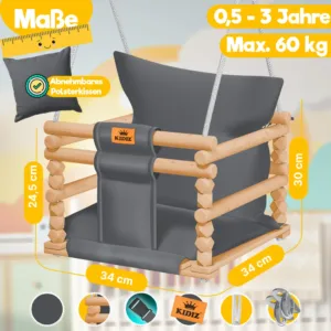 Overall, the KIDIZ baby wooden swing offers a first-class combination of safety, comfort, and durability. With its thoughtful design and high-quality materials, it’s the perfect choice for parents who want to give their children carefree playtime. Discover the joy of swinging with the KIDIZ baby wooden swing today!