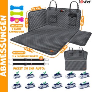LOVPET® Car trunk liner for dogs, quilted with side and drawer side protection | Universal trunk protection mat for dogs | Water-repellent & scratch-resistant dog blanket with seat belt and accessories.