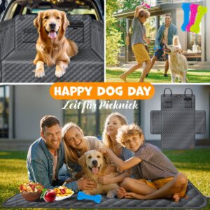 The LOVPET Trunk Protection can be used in a variety of ways. It is not only suitable for use in the car, but also excellent as a picnic blanket. The water-resistant material protects against moisture and dirt, while the non-slip stud design on the back ensures that the blanket always stays in place, no matter where you use it.