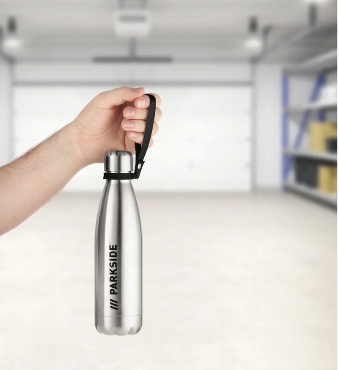 ترمس Parkside المصنوع من الفولاذ المقاوم للصدأ، مثالي للحفاظ على مشروباتك الساخنة أو الباردة لمدة تصل إلى 6 ساعات، ويأتي بتصميم عملي وسهل الحمل.